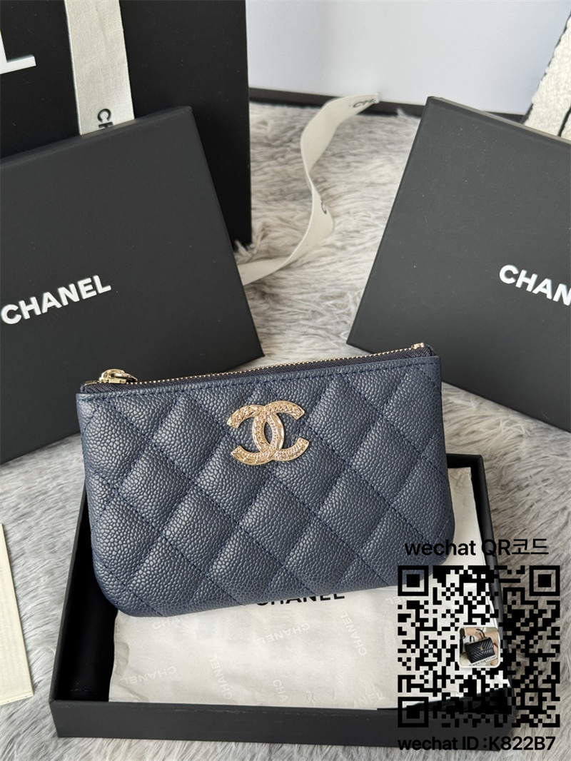 샤넬 시즌 CC로고 카드지갑 똑딱이 캐비어 블랙 AP3049