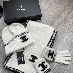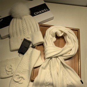 샤넬 CHANEL 모자 목도리 장갑 세트