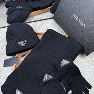 프라다 PRADA 모자 목도리 장갑 세트