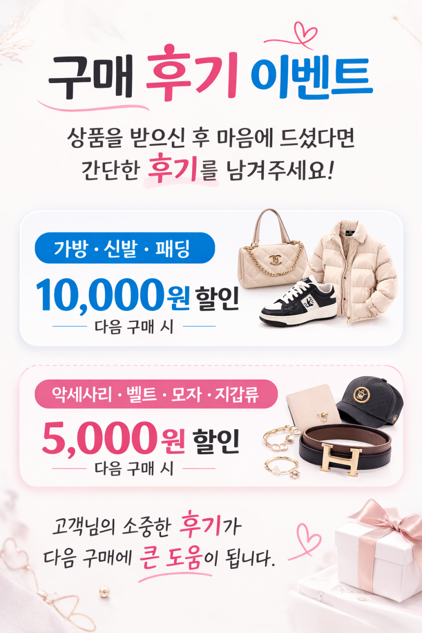 후기를 남겨주신 고객님께는