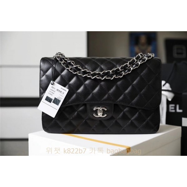 샤넬 CHANEL 클래식백 캐비어 램스킨 금장 은장 30cm