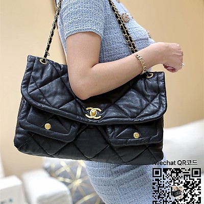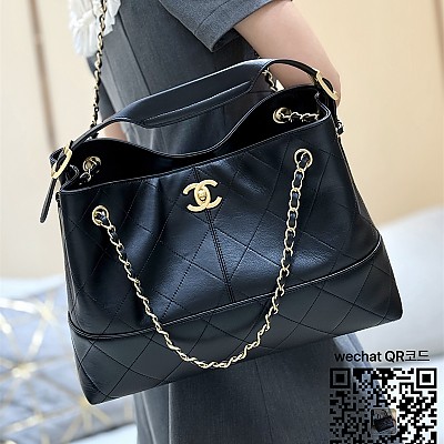 샤넬 25A 공방 체인 호보백 라지쇼퍼백 블랙 카프스킨 AS5634