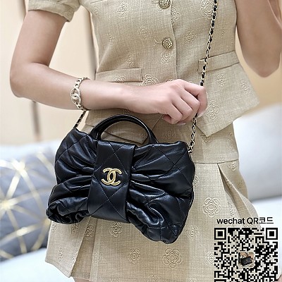 샤넬 미니 보우백 CC로고 체인 램스킨 블랙 골드 AS5849